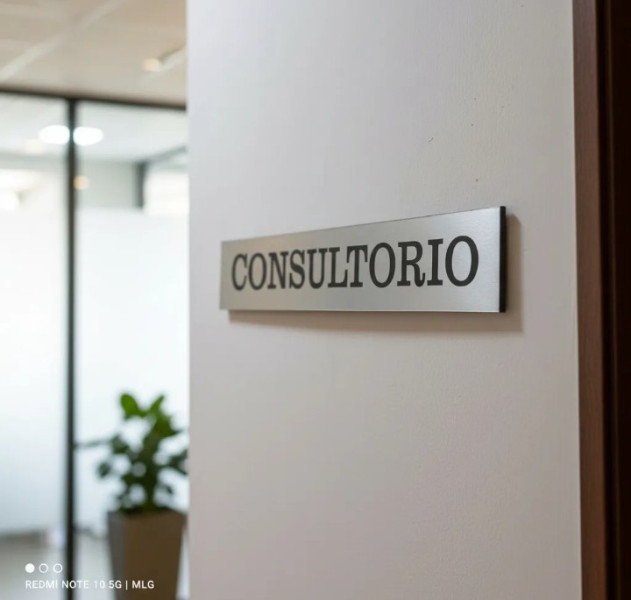 Cartel de 30x5 cm para indicar puerta consultorio, oficina, salas. En aluminio compuesto.