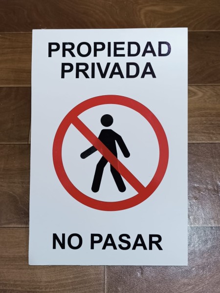 Cartel señaletica "propiedad privada, no pasar" . Medida: 30x20cm. Material: pvc / sintra.