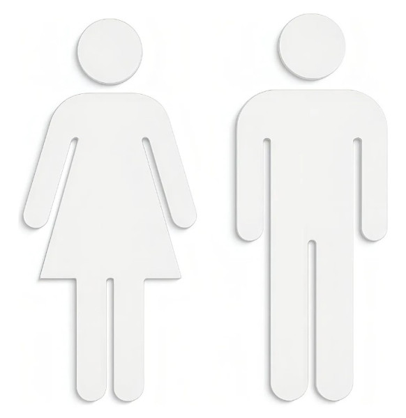 siluetas en polyfan de 2cm de espesor para puerta de baño. 2 unidades, 15cm de alto.